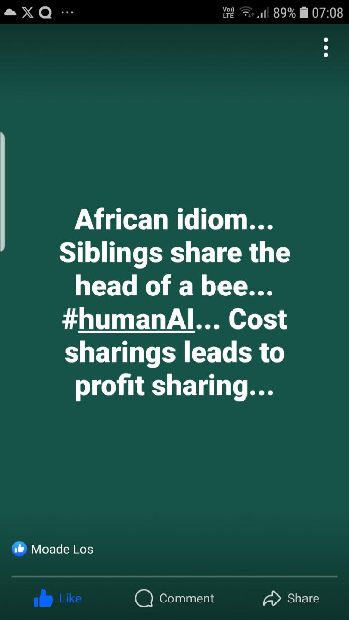 African idiom... Siblings share the head of a bee... #humanAI... Cost sharing leads to profit sharing...