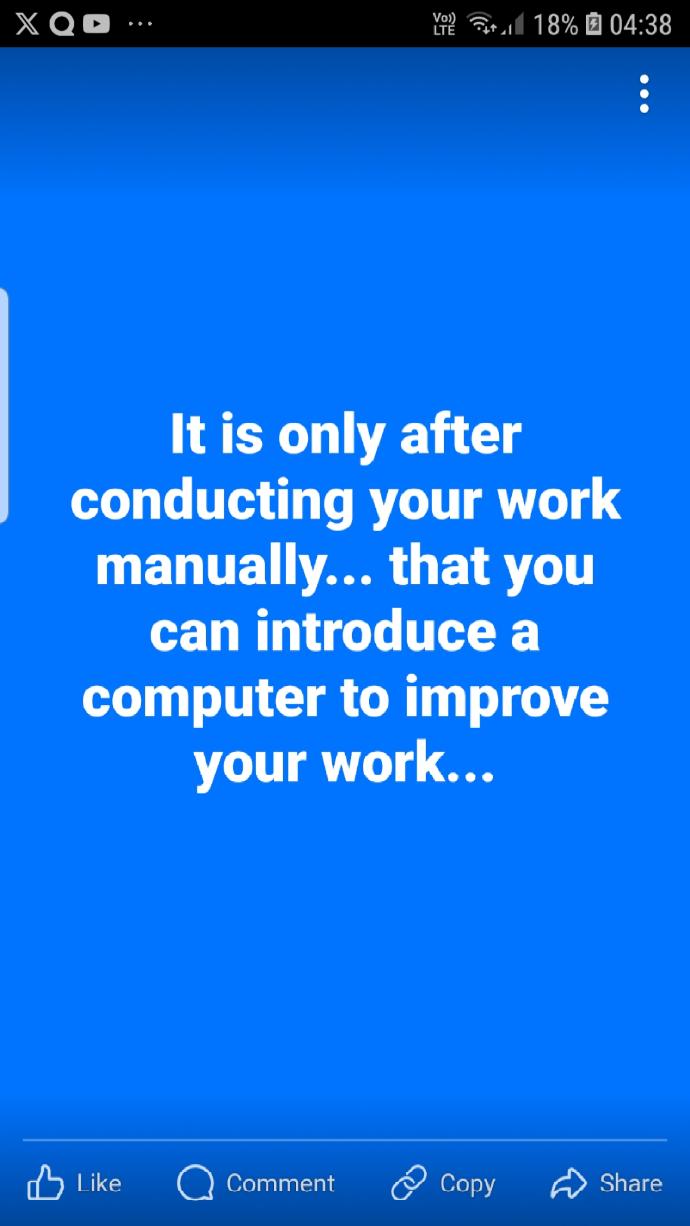 It is only after conducting your work manually... that you can introduce a computer to improve your work...