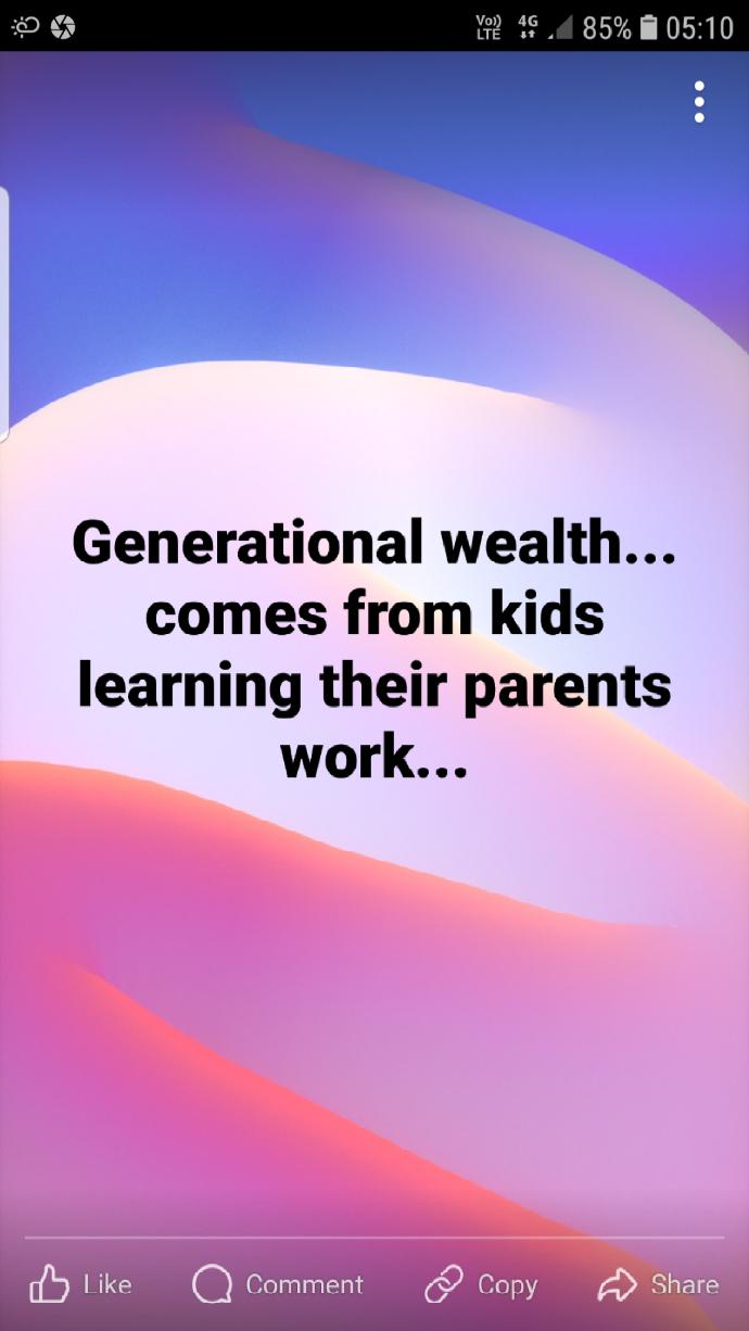 Generational wealth... comes from kids learning their parents work...