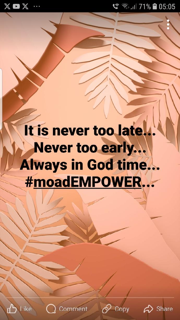 It is never too late... Never too early... Always in God time...