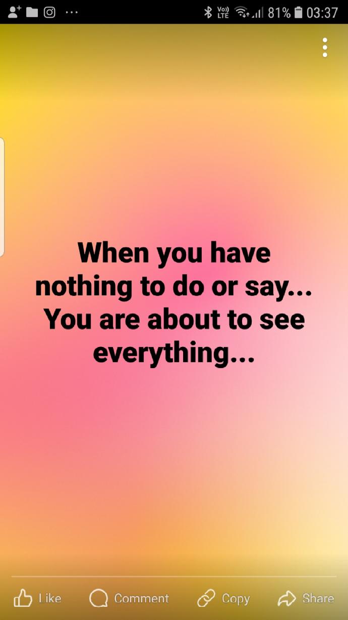 When you have nothing to do or say... You are about to see everything...