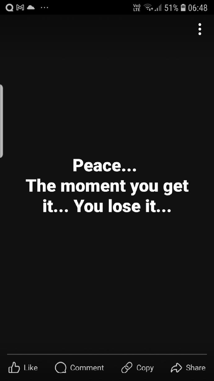 Peace... The moment you get it... You lose it...