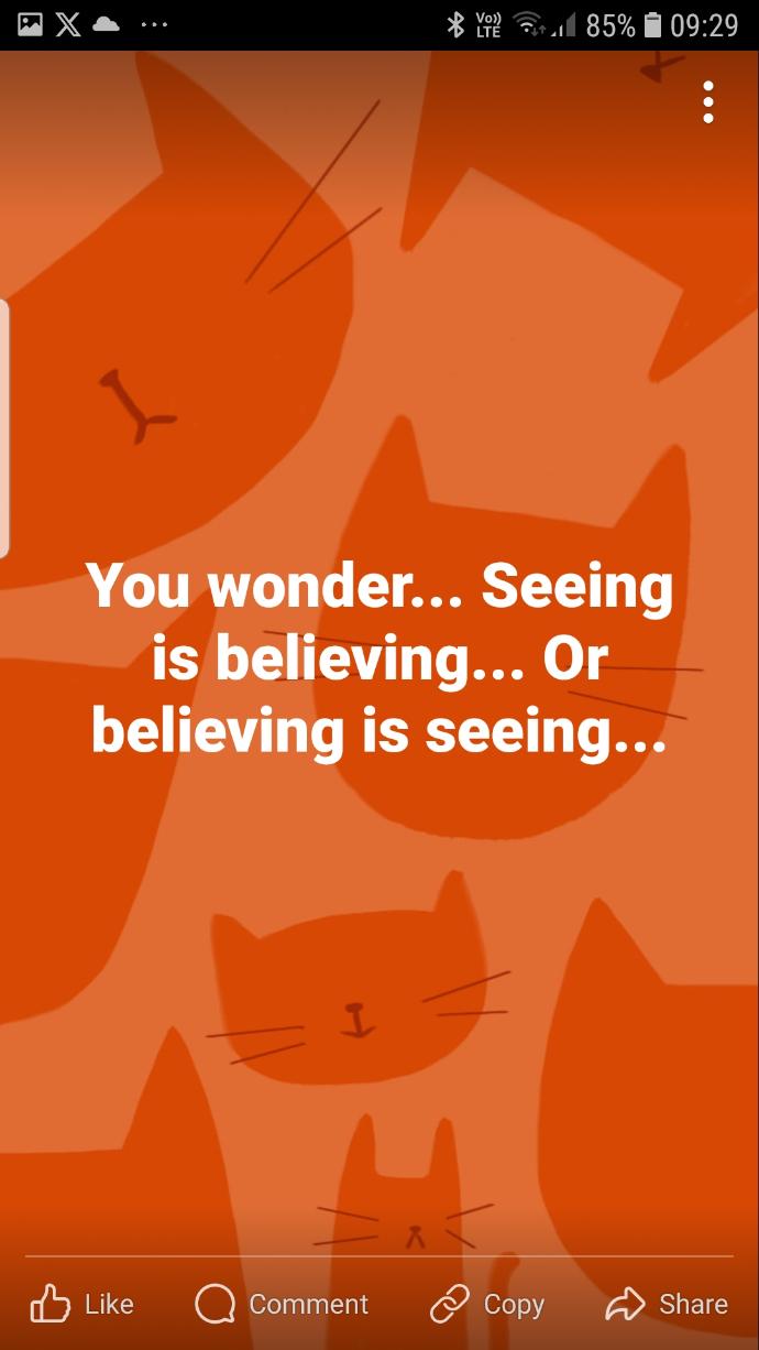 You wonder... Seeing is believing... Or believing is seeing...