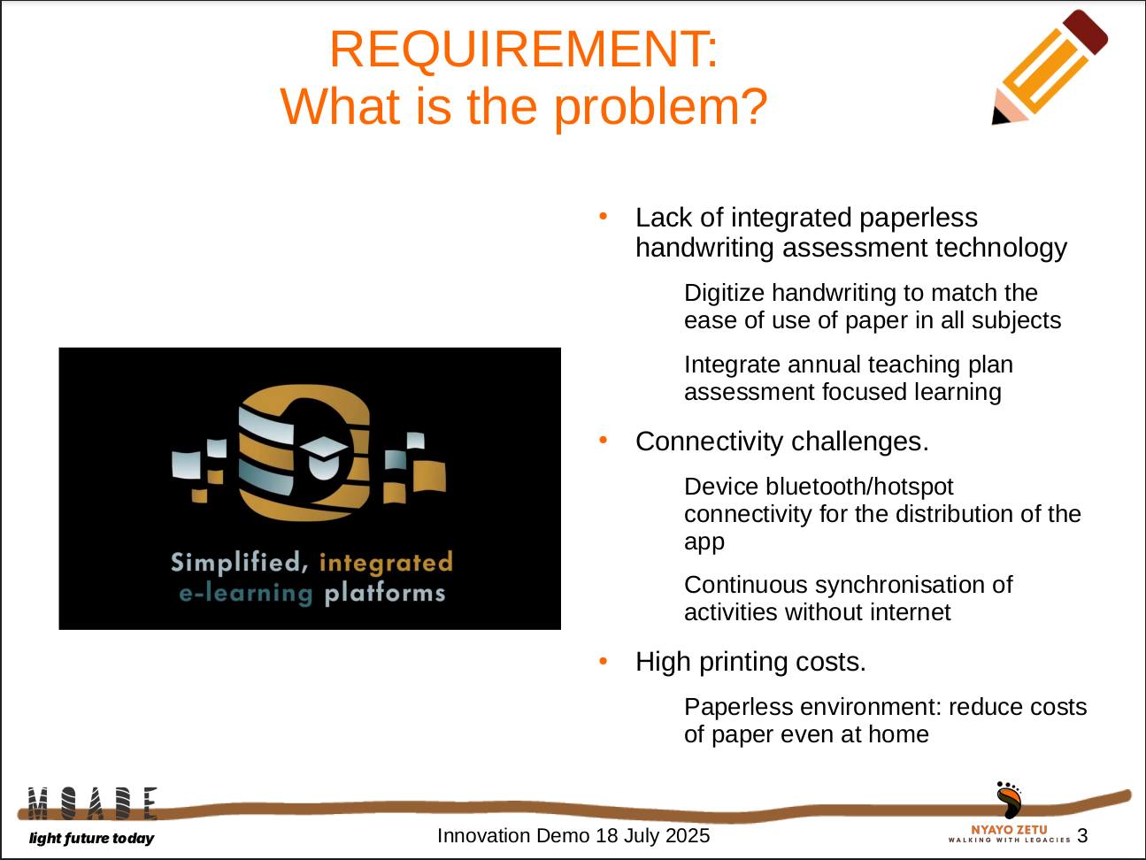18 July 2025 We have worked on a digital learning and training platform that will support anyone from their early education throughout their stages until their work or entrepreneural skills continuous improvement. We are now targeting to package and distribute with our own bespoke hardware that will eliminate the need for internet - to be able to work offline and sync via bluetooth or wifi in any learning space - school or home or under a tree. Demo android app to be released at https://schoollms.online...